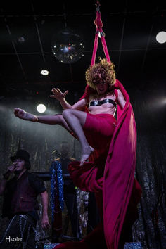 From 2014 until 2017, Manô Rangel was part of the crew, travelling around the country, performing on the aerial circus apparatus with acts she created specially for the band concerts.